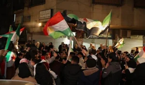 بعض أهالي حي ركن الدين في دمشق يحتفلون عقب إصدار الشرع مرسوماً تضمّن إقراراً بحقوق الكرد..