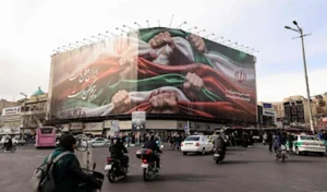 أمّا خلاصة الاستعداد الداخلي لأيّ حرب مفروضة، فتتجلّى بوضوح في ميدان الثورة، حيث تنتصب لافتة ضخمة كُتب عليها: «من يزرع الريح يحصد العاصفة»، تعلو صورة غرافيكية عالية الدقّة لحاملة طائرات أميركية في عرض البحر، رُسمت نجوم علمها على هيئة نقاط سقوط الصواريخ الإيرانية، مُمتزِجة بخطوط الدم والمياه البيضاء التي تجسّد العلم الأميركي.