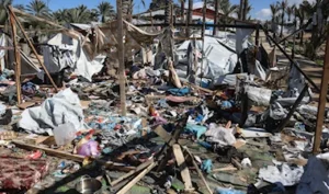 أعـلاه | خيام نازحين هشّمتها غارة جوية إسرائيلية استهدفت خانيونس!