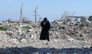 نازحون جنوبيون يتفقدون بيوتهم المدمرة في قرية مارون الراس..