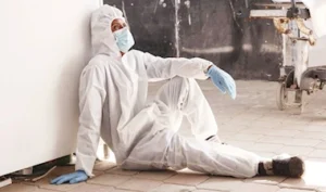 موظف في مستشفى «ناصر» في خانيونس يرتاح بعد إنزال جثامين 30 شهيداً فلسطينياً سلّمها الإحتلال.