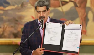 وتزامن دخول القانون حيز التنفيذ مع تصاعد التوترات مع الولايات المتحدة، بعد أن أرسل البنتاغون حاملة الطائرات «جيرالد فورد» إلى مياه أميركا الجنوبية، ترافقها ثلاث سفن حربية، في خطوة فسرتها كاراكاس بأنها استعراض هجومي ينذر بخطر حقيقي.