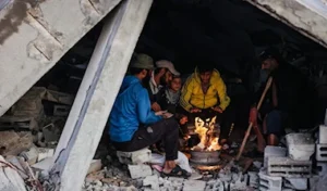 نازحون يتحلّقون حول موقد نار للتدفئة في مدينة غزة!