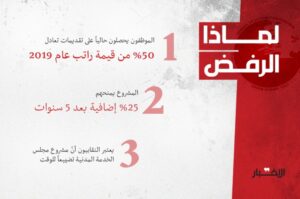 من الواضح للروابط أن حصر درس تعديل الرواتب بمشروع مجلس الخدمة المدنية، يهدف إلى دفعهم للقبول بتنازل مقابل تعديل قيمة الرواتب يتعلق بتعديل نظام التقاعد لسحب مكتسبات تاريخية للموظفين تضمنها مشروع مجلس الخدمة المدنية مثل خفض نسبة معاش التقاعد إلى 70% من راتب الموظف بدلاً من 85%، وإيقاف المعاش التقاعدي عن ابنة الموظف العزباء بعد بلوغها 25 سنة.