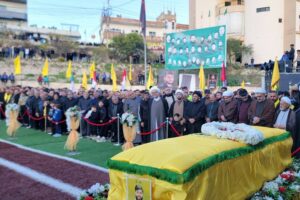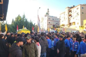 وتقدّمت مسيرة التّشييع فرق من كشافة الإمام المهدي (عج) حملت الرايات الحسينية والكشفية ورايات لبنان والمقاومة وصور القادة وشهداء المقاومة الإسلامية، وسيّارات إسعاف تابعة لمديريّة جبل عامل الأولى في الدفاع المدنيّ – الهيئة الصحية الإسلامية جابت شوارع البلدة وصولًا إلى جبّانتها، قبل أن يُصلّى على الجثمان الطّاهر الذي ووري في الثرى إلى جانب من سبقه من رفاق دربه السعداء.