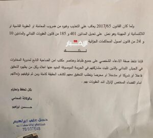 وعليه، أشار الوكيل القانوني للعائلة، المحامي حسن إبراهيم، في حديث لـ«الأخبار»، إلى أنه تم «اتخاذ صفة الادعاء الشخصي بحق جميع ضباط وعناصر مكتب أمن الضاحية، التابع لمديرية المخابرات في الجيش اللبناني، ممن ثبتت مشاركتهم في الجريمة، إضافة إلى كل من يظهره التحقيق فاعلاً أو شريكاً».
