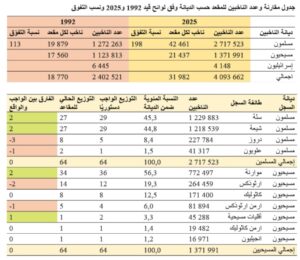 وقد جاءت انتخابات 1992 في أعقاب تعديل المادة 24 من الدستور، التي أرست مبدأ المناصفة بين المسلمين والمسيحيين بهدف تحقيق توازن مرحلي بعد حرب أهلية طاحنة واستنفار مذهبي، في وقت كان المسلمون يشكّلون نحو 53% من الناخبين مقابل 46.8% للمسيحيين. أمّا في عام 2025، فقد ارتفعت نسبة الناخبين المسلمين إلى 66.4% مقابل 33.5% للمسيحيين، ما أوجد فجوة ديموغرافية كبيرة تنعكس مباشرة على الاستحقاقات الانتخابية، في ظل قانون انتخابي لم يعترف بهذا الواقع الجديد ولم يضع أسساً تراعي هذا التفاوت وتضمن التمثيل الصحيح.