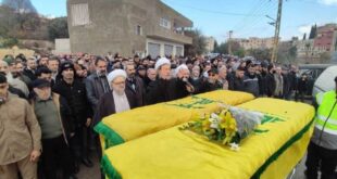 وسط جو من الحزن على اثنين من أبنائها والغضب من تقاعس الدولة عن حماية مواطنيها، شيّع أهالي مدينة الهرمل شهيدَي الغدر الصهيوني، حسين محمود الجوهري و ماجد عبد الأمير قانصوه، اللذين ارتقيا، الخميس 25 كانون الأول/ديسمبر 2025، في غارة من مُسيَّرة صهيونية استهدفتهما على طريق الناصرية – حوش السيد علي …